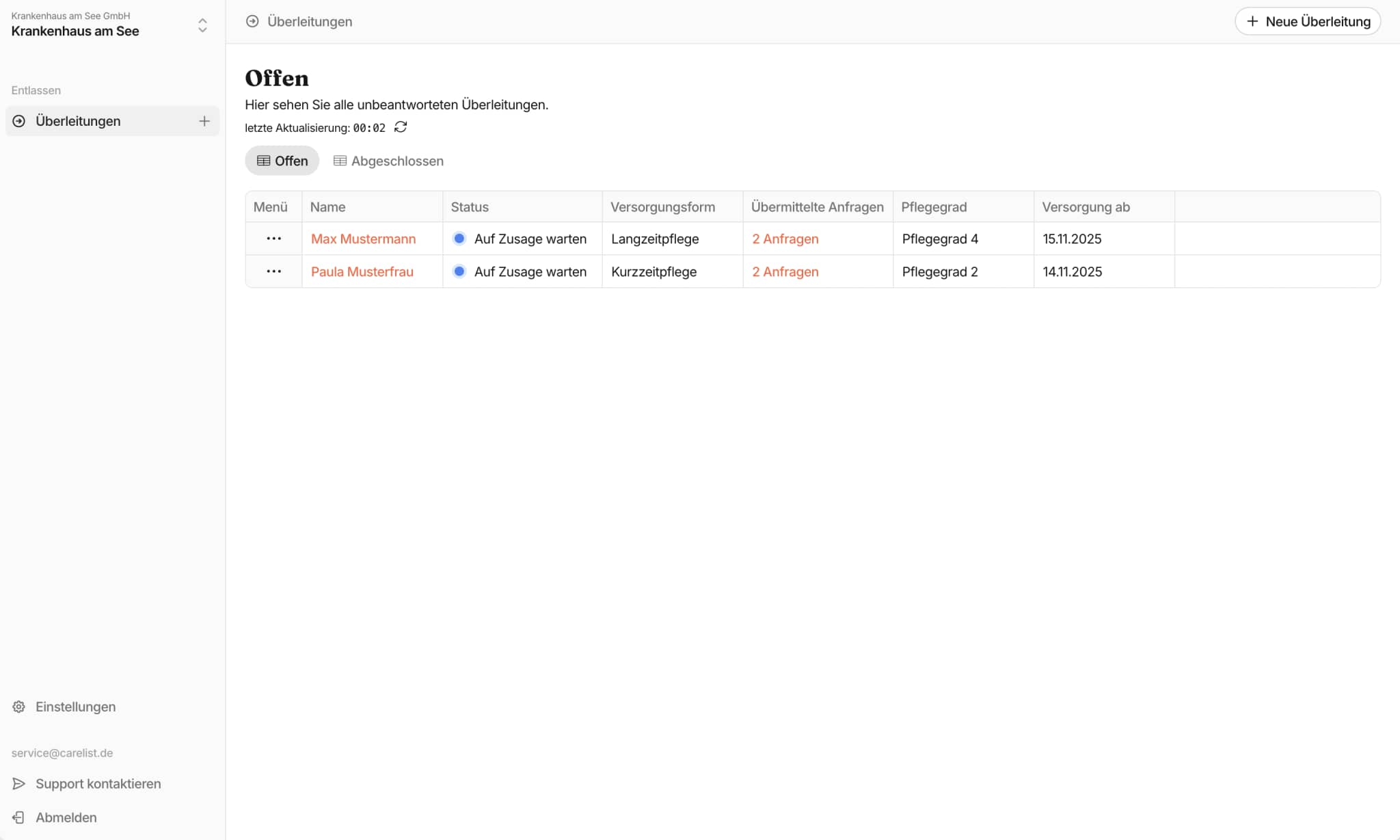 Einfaches Entlassmanagement - schnell und unkompliziert bundesweit an passende Pflegeanbieter überleiten.